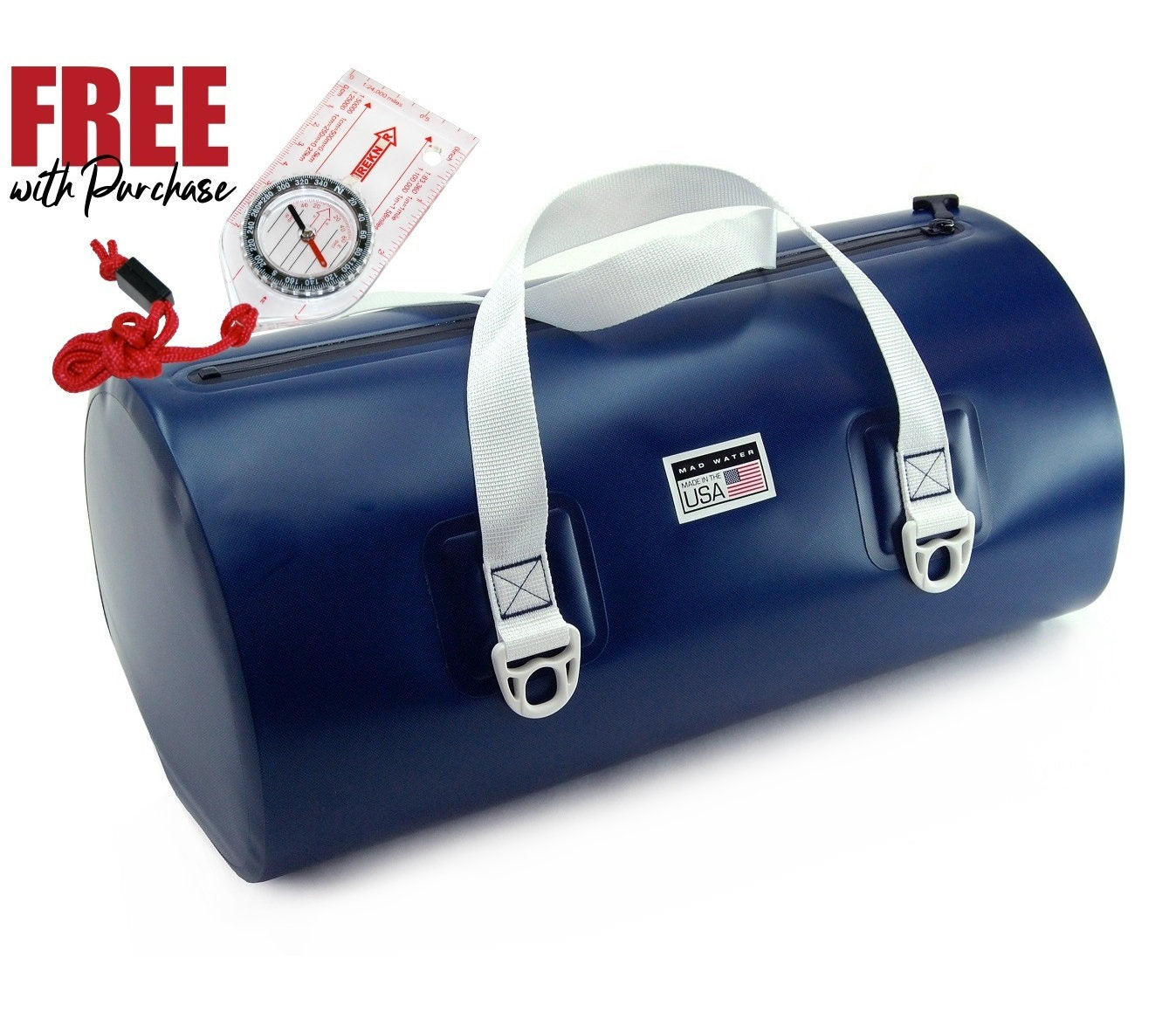 A USA-MADE SUBMERSIBLE DUFFEL BAG WITH A ZIPPER. Now with a FREE Treknor T580 Deluxe Map Compass! Now when you use your Allatoona Waterproof Duffel to "go anywhere", you can use your new compass to make sure you get back!