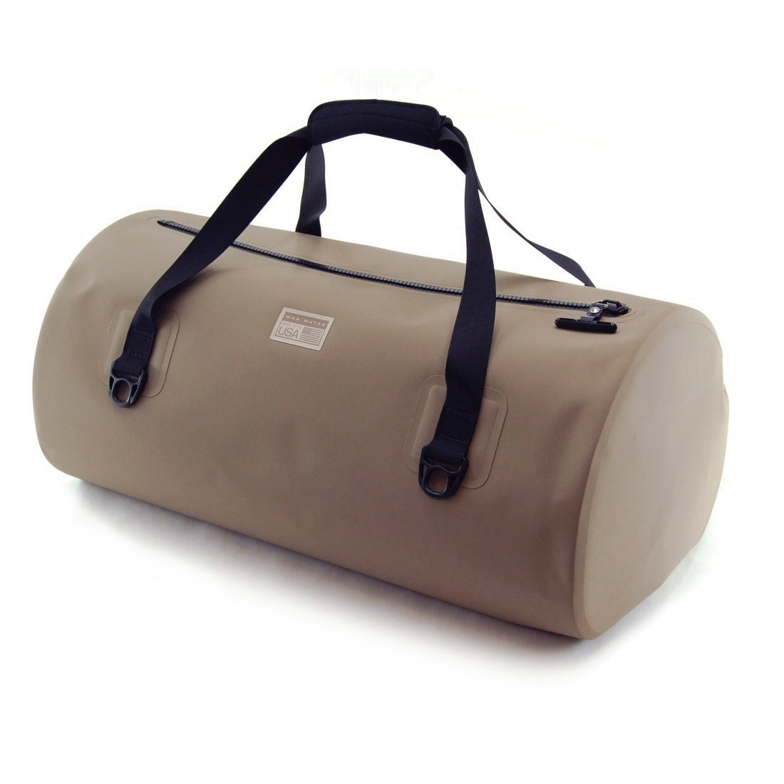 The wide 1.5” nylon webbing handles were designed to be long enough to use as backpack straps, should the need arise. Inside the bag, on the end just as you begin to open the zipper, is a mesh zipper pocket (7x7inches) to keep your keys and wallet close at hand. And the 4 deluxe D-rings are perfect for securing the duffel in almost any situation. Compared in similar thicknesses polyurethane is superior to PVC most every way: cold weather, direct sunlight, chemical resistance, crack resistance, abrasion resistance, environmental friendliness, and overall strength. And we chose some of thickest double-coated polyurethane to maximize all of these positive characteristics. The Coyote Brown version of the Waterproof USA Duffel was geared to meet the needs of the Fishing and Hunting markets.