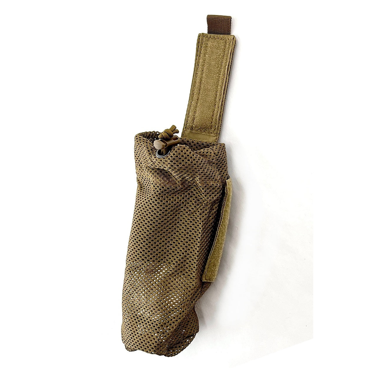 Able to attach to any molle system, or even most belts, this collapsible mesh water bottle holder will hold most reusable (or disposable) water bottles. When in use, there is also a top bungee retainer to secure the bottle in place. This is the same water bottle holder that comes with each Hartwell Deck Bag.