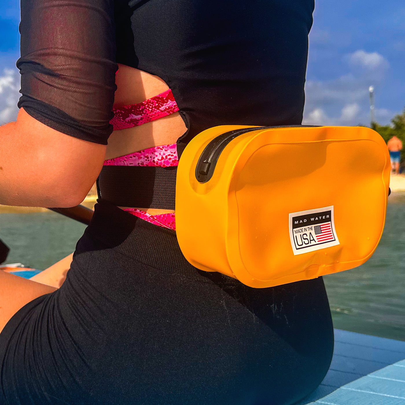 Note: To function properly, the waterproof zipper of your waist pack must be fully closed. To avoid knocking the zipper while underwater, it is not recommended to go swimming while wearing the pack submerged.